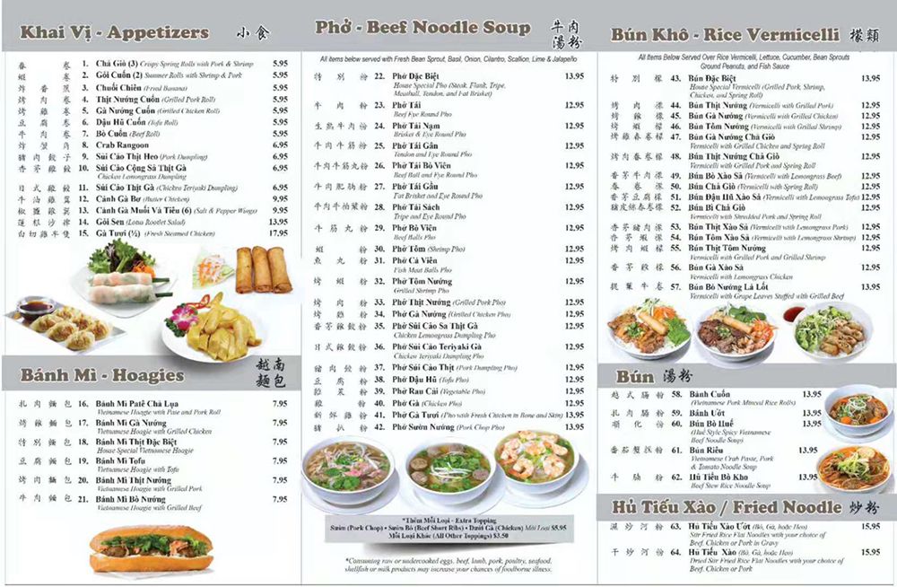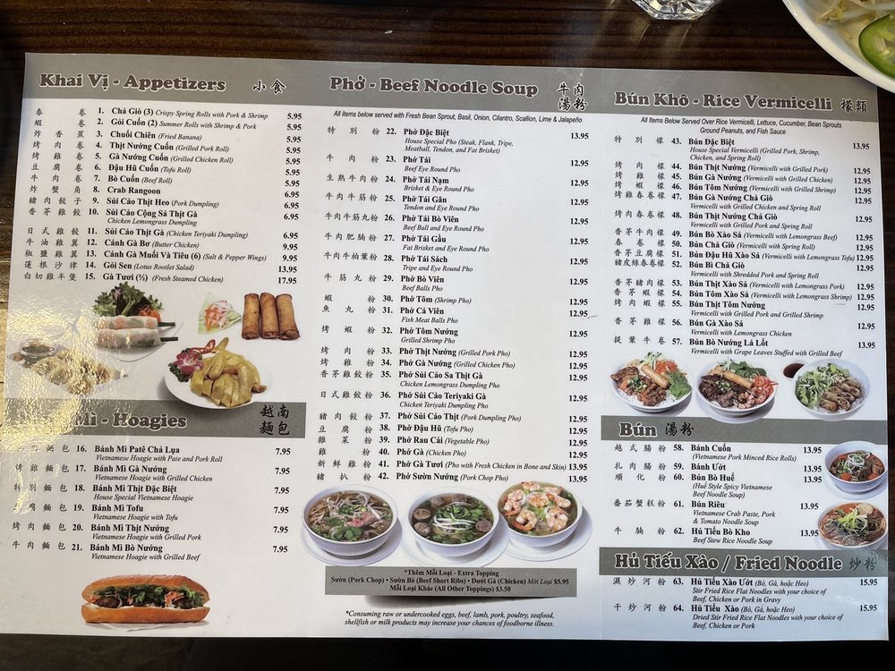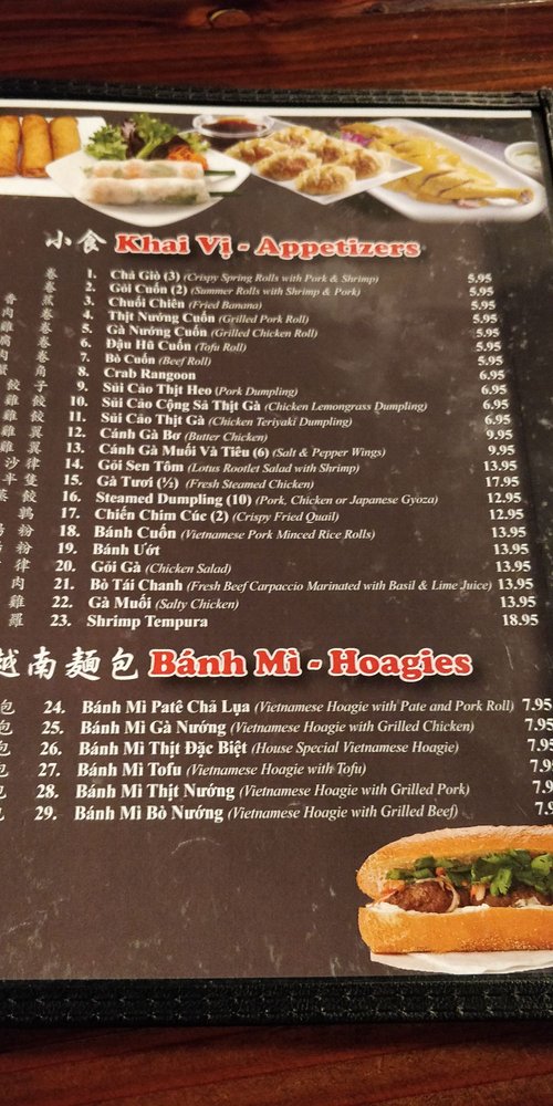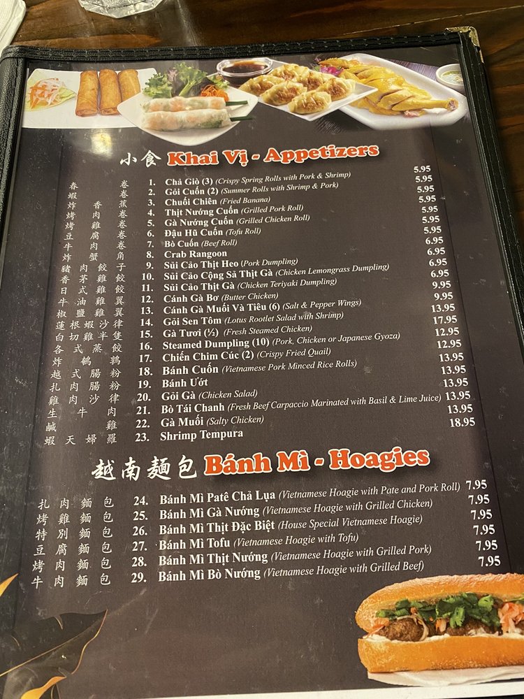 Pho Nam Giang is a Vietnamese restaurant that offers a variety of dishes ranging from appetizers like Cha Gio crispy spring rolls to Banh Mi sandwiches and a wide selection of Pho noodle soups. The menu includes unique items like Canh Ga Bo butter chicken and Banh Cuon minced rice rolls. Customers rave about the tofu pho and seafood pho with just the right amount of flavors. The spacious and cozy ambiance, friendly staff, and delicious food make it a popular choice for Vietnamese cuisine lovers. The reviews praise the top-notch service, fresh ingredients, and flavorful broths. The extensive menu options cater to diverse preferences, ensuring a satisfying dining experience for all patrons. Overall, Pho Nam Giang stands out for its authentic Vietnamese flavors and generous portions, making it a go-to spot for a hearty and satisfying meal.