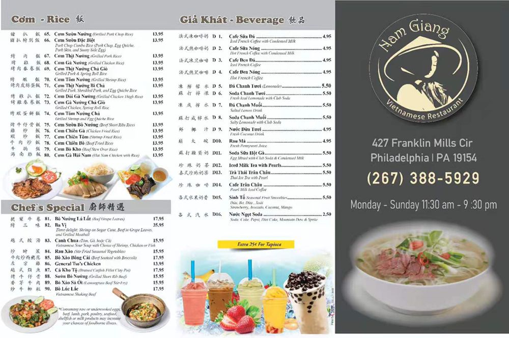 Pho Nam Giang Menu (Update 2025)